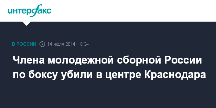 Москва. 14 июля. INTERFAX.RU - Уголовное дело возбуждено в Краснодаре по факту убийства в ночь на воскресенье 19-летнего молодого человека, сообщает пресс-служба следственного управления СКР по краю. По предварительной информации, погибший входил в молодежную сборную России по боксу.