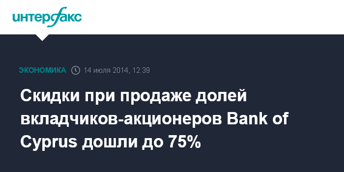Москва. 14 июля. INTERFAX.RU – Вкладчики крупнейшего кипрского кредитного учреждения Bank of Cyprus, которые, сами того не желая, стали его акционерами в прошлом году, продают акции банка с существенным дисконтом, чтобы хоть как-то сократить убытки, пишет Financial Times.