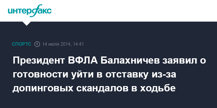 Президент ВФЛА Балахничев заявил о готовности уйти в отставку из-за допинговых скандалов в ходьбе