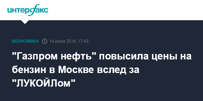 "Газпром нефть" повысила цены на бензин в Москве вслед за "ЛУКОЙЛом"