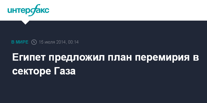 Москва. 15 июля. INTERFAX.RU - Министерство иностранных дел Египта предложило план временного прекращения огня в палестино-израильском конфликте, сообщило в понедельник агентство Associated Press.