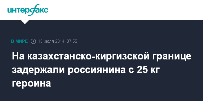 Москва. 15 июля. INTERFAX.RU - На казахстанско-киргизской государственной границе задержан гражданин России с крупной партией наркотиков, сообщила пресс-служба пограничной службы комитета национальной безопасности Казахстана.