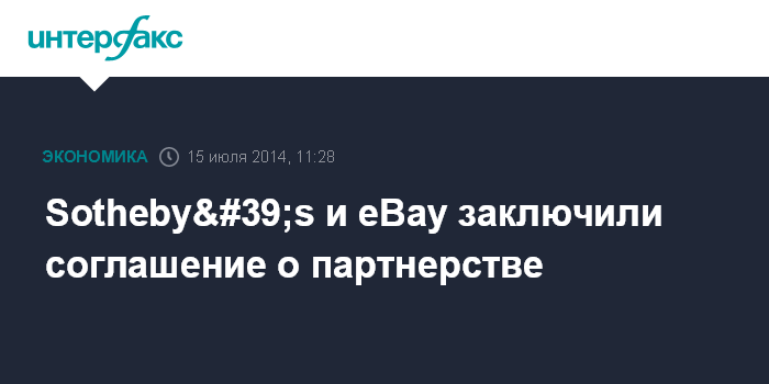 Москва. 15 июля. INTERFAX.RU - Аукционный дом Sotheby's и интернет-магазин eBay в понедельник объявили о заключении соглашения, которое позволит 145 млн пользователям электронной торговой площадки получить доступ к аукционам Sotheby's в режиме реального времени.
