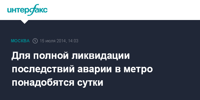 Москва. 15 июля. INTERFAX.RU - Для полной ликвидации последствий аварии на Арбатско-Покровской линии столичного метро понадобятся сутки, заявил заммэра Москвы Петр Бирюков.