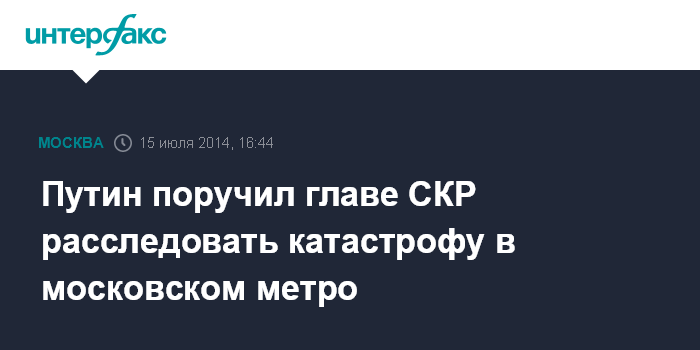 Путин поручил главе СКР расследовать катастрофу в московском метро