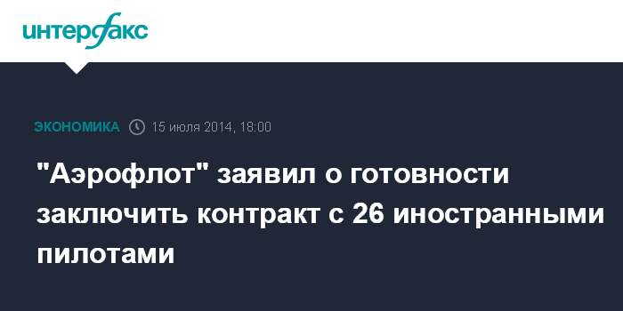 Москва. 15 июля. INTERFAX.RU - "Аэрофлот" уже сейчас готово заключить контракт с 26 иностранными пилотами, сообщил журналистам глава авиакомпании Виталий Савельев в рамках авиасалона в Фарнборо.