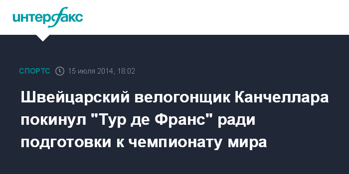 Москва. 15 июля. INTERFAX.RU - Швейцарский гонщик команды Trek Factory Racing Фабиан Канчеллара во вторник объявил, что прекращает борьбу на "Тур де Франс", чтобы отдохнуть и подготовиться к чемпионату мира.