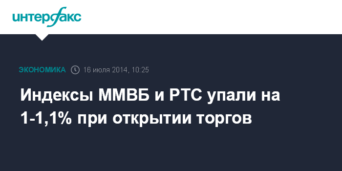 Индексы ММВБ и РТС упали на 1-1,1% при открытии торгов