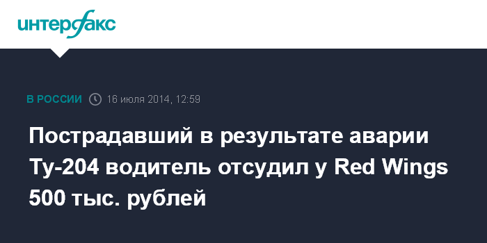 Пострадавший в результате аварии Ту-204 водитель отсудил у Red Wings 500 тыс. рублей