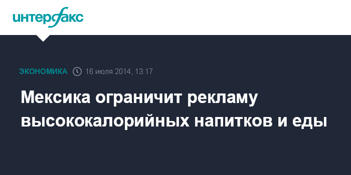Москва. 16 июля. INTERFAX.RU - В Мексике ограничат рекламу высококалорийных продуктов в рамках кампании по борьбе с ожирением населения, сообщают в среду латиноамериканские СМИ.
