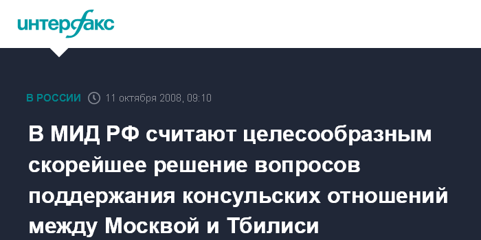 В МИД РФ считают целесообразным скорейшее решение вопросов поддержания консульских отношений между Москвой и Тбилиси