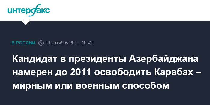 Кандидат в президенты Азербайджана намерен до 2011 освободить Карабах – мирным или военным способом