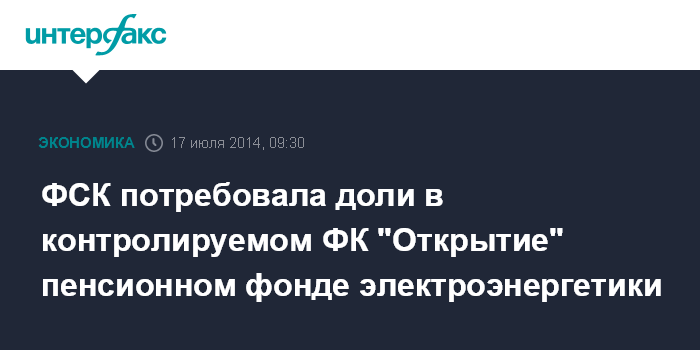 ФСК потребовала доли в контролируемом ФК "Открытие" пенсионном фонде электроэнергетики