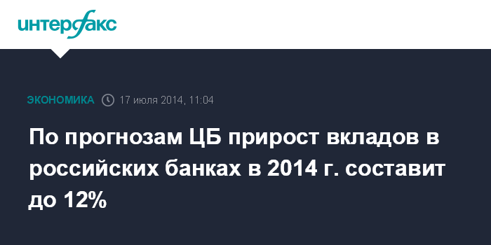 Москва. 17 июля. INTERFAX.RU - Прирост вкладов в банках РФ в 2014 году составит 10-12%, заявил зампред ЦБ РФ Михаил Сухов на Санкт-Петербургской международной банковской конференции в четверг.