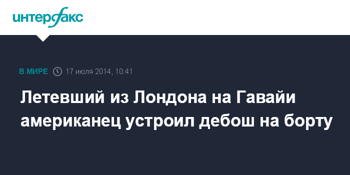 Москва. 17 июля. INTERFAX.RU - Гражданин США, летевший рейсом из Лондона в американский штат Гавайи, угрожал убить бортпроводников и взорвать самолет, передает в четверг агентство Associated Press.