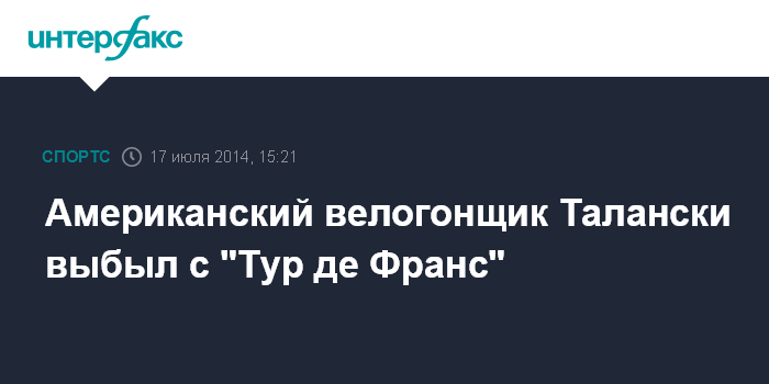 Москва. 17 июля. INTERFAX.RU - Американский велогонщик команды Garmin Sharp Эндрю Талански отказался продолжить выступления на "Тур де Франс", сообщает Cyclingnews.