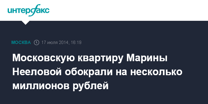 Московскую квартиру Марины Нееловой обокрали на несколько миллионов рублей
