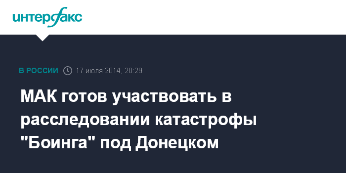 МАК готов участвовать в расследовании катастрофы "Боинга" под Донецком