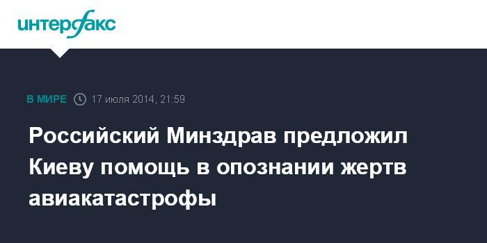 Российский Минздрав предложил Киеву помощь в опознании жертв авиакатастрофы
