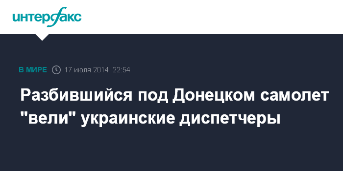 Москва. 17 июля. INTERFAX.RU - Разбившийся в Донецкой области самолет Malaysia Arlines "вели" украинские диспетчеры, заявил глава Федерального агентства воздушного транспорта (Росавиация) Александр Нерадько.