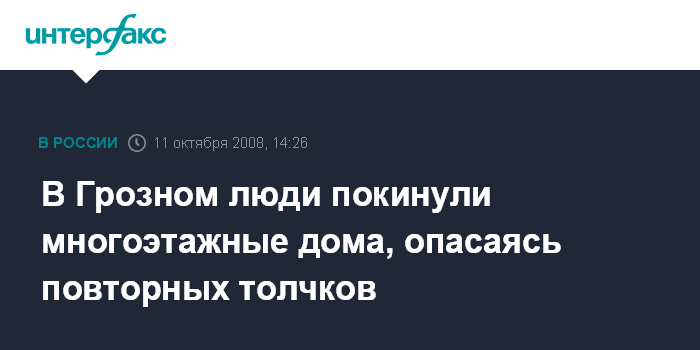 Москва. 11 октября. INTERFAX.RU - В Грозном каких-либо видимых разрушений в результате произошедшего днем в субботу землетрясения не заметно.
