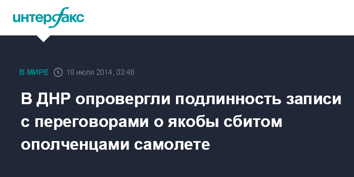 В ДНР опровергли подлинность записи с переговорами о якобы сбитом ополченцами самолете