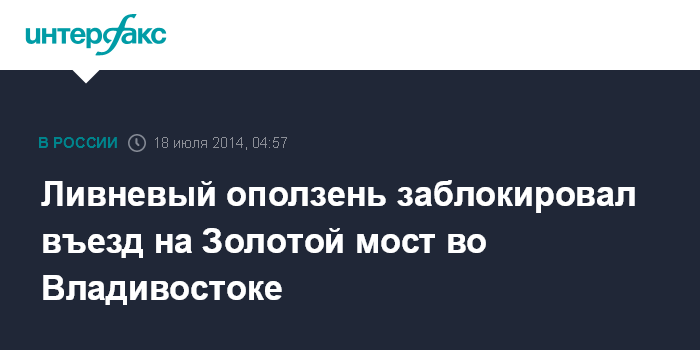 Москва. 18 июля. INTERFAX.RU - После сильного ливня в ночь на пятницу оползень сошел на дорогу и заблокировал основной въезд на Золотой мост во Владивостоке, прокуратура проводит проверку.