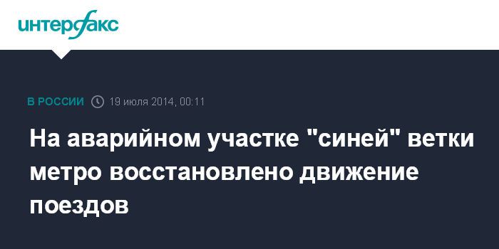 Москва. 19 июля. INTERFAX.RU - Пассажирское движение поездов на закрытом после аварии участке Арбатско-Покровской линии московского метрополитена восстановлено в ночь на субботу, сообщил корреспондент "Интерфакса".