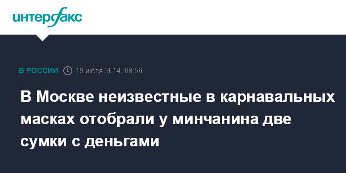 В Москве неизвестные в карнавальных масках отобрали у минчанина две сумки с деньгами