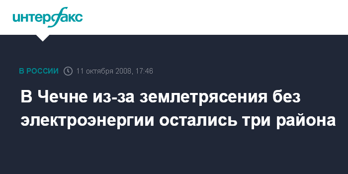 Москва. 11 октября. INTERFAX.RU - Три района в Чечне оказались без света из-за произошедшего в субботу землетрясения, сообщили агентству "Интерфакс-Юг" в пресс-службе южного регионального центра МЧС России.