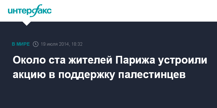 Москва. 19 июля. INTERFAX.RU - Более сотни человек собрались близ Северного вокзала в Париже, чтобы выразить поддержку палестинцам из сектора Газа, где Израиль проводит операцию по борьбе с боевиками, сообщает в субботу веб-сайт французской газеты Le Figaro.
