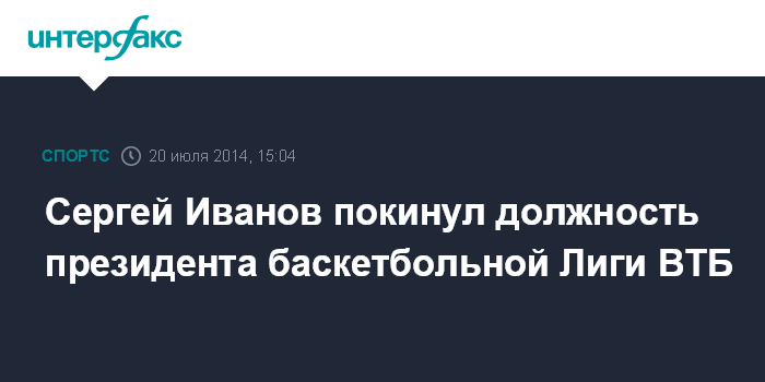 Сергей Иванов покинул должность президента баскетбольной Лиги ВТБ