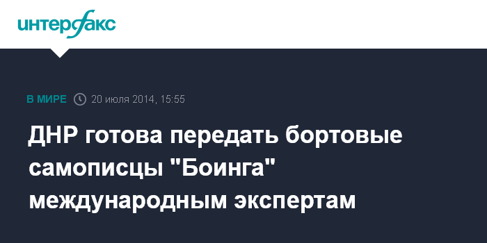 Москва. 20 июля. INTERFAX.RU - "Премьер-министр" самопровозглашенной "Донецкой народной республики" (ДНР) Александр Бородай подтверждает, что, предположительно, "черные ящики" разбившегося малазийского "Боинга" находятся в Донецке. "В районе крушения обнаружены технические детали лайнера, похожие на "черные ящики", они находятся в Донецке, в Доме правительства ДНР под моим личным контролем. Они будут вручены международным экспертам в случае их приезда", - заявил он журналистам в воскресенье.