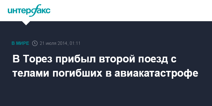Москва. 21 июля. INTERFAX.RU - Второй поезд с четырьмя вагонами-рефрижераторами для транспортировки тел погибших пассажиров авиалайнера "Боинг-777" компании Malaysia Airlines прибыл в город Торез, сообщает государственная комиссия по расследованию катастрофы самолета.