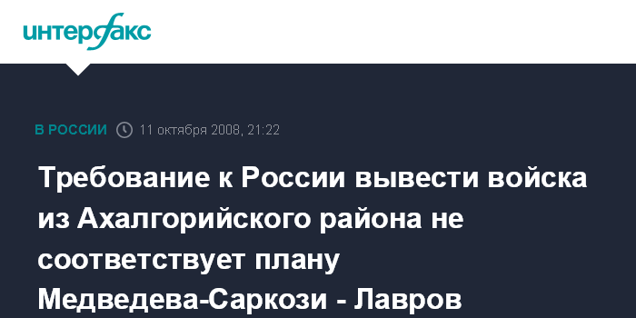 Требование к России вывести войска из Ахалгорийского района не соответствует плану Медведева-Саркози - Лавров