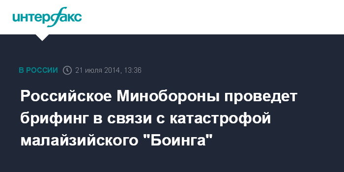 Российское Минобороны проведет брифинг в связи с катастрофой малайзийского "Боинга"
