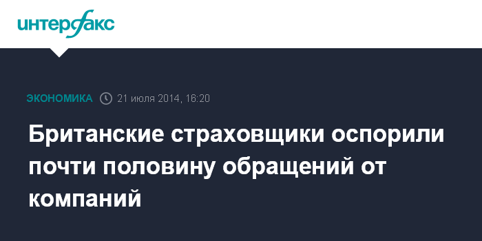 Москва. 21 июля. INTERFAX.RU - Британские страховщики оспаривают почти половину требований компаний о возмещении ущерба, при этом рассмотрение одной претензии занимает до трех лет, пишет Financial Times со ссылкой на исследование компании Mactavish. Более 2/5 компаний, принявших участие в исследовании, обращались за возмещением крупных сумм по страховке, но лишь четверть всех обращений была удовлетворена.