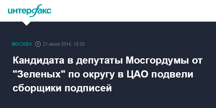 Москва. 21 июля. INTERFAX.RU - Кандидат в депутаты Мосгордумы от партии "Зеленые" Александра Аставина считает, что причина отказа ей в регистрации - некачественная работа сборщиков подписей.