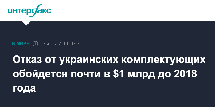 Отказ от украинских комплектующих обойдется почти в $1 млрд до 2018 года