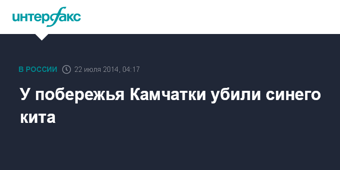 Москва. 22 июля. INTERFAX.RU - На побережье в Усть-Камчатском районе обнаружена туша убитого кита. Об этом сообщает инспекция государственного экологического надзора Камчатского края.