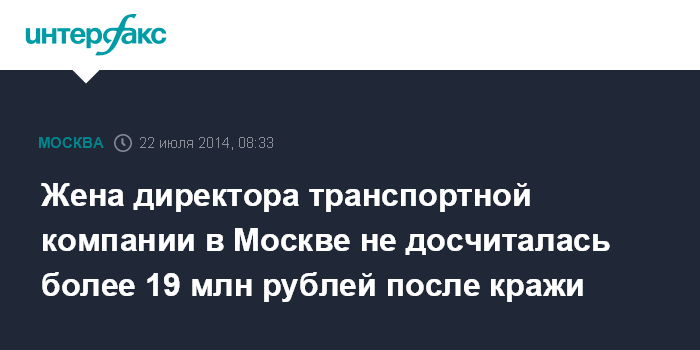 Жена директора транспортной компании в Москве не досчиталась более 19 млн рублей после кражи