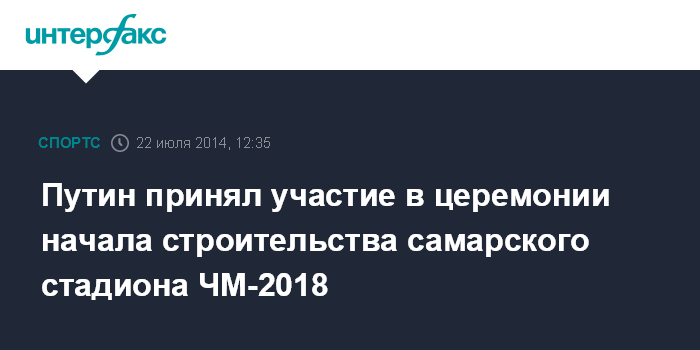 Москва. 22 июля. INTERFAX.RU - Президент России Владимир Путин в понедельник в Самаре принял участие в закладке капсулы в основание новой футбольной арены, которая будет построена к чемпионату мира по футболу 2018 года.