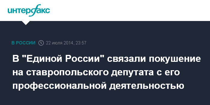 В "Единой России" связали покушение на ставропольского депутата с его профессиональной деятельностью