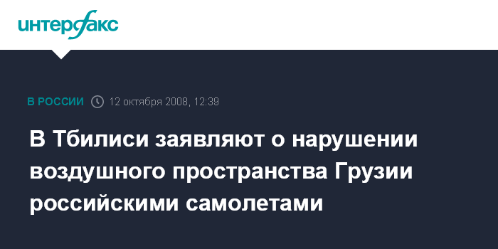 В Тбилиси заявляют о нарушении воздушного пространства Грузии российскими самолетами