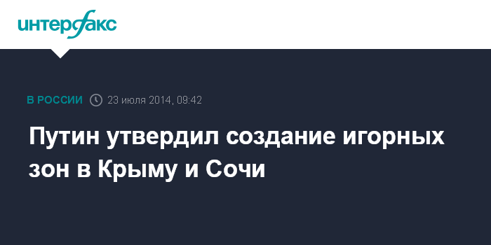 Москва. 23 июля. INTERFAX.RU - Президент Владимир Путин подписал закон о создании игорных зон в Крыму и Сочи. Соответствующий документ опубликован на официальном портале правовой информации.