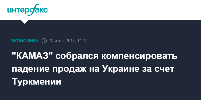 Москва. 23 июля. INTERFAX.RU – "КАМАЗ" рассчитывает компенсировать падение продаж, связанное с кризисом на Украине, за счет усиления коммерческих контактов, в частности, с Туркменией, сообщается на сайте предприятия со ссылкой на слова генерального директора ЗАО "Внешнеторговая компания "КАМАЗ" Рафаила Гафеева.
