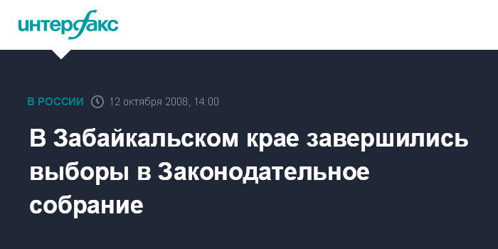 Чита. 12 октября.INTERFAX.RU - В Забайкальском крае в 20.00 по местному времени (14.00 мск) закрылись все избирательные участки по выборам в Законодательное собрание региона, сообщил агентству "Интерфакс-Сибирь" сотрудник облизбиркома Роман Амплеев.