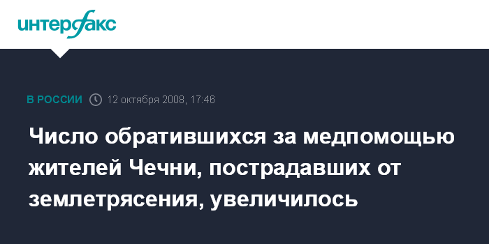 Грозный. 12 октября. INTERFAX.RU - 30 человек из числа получивших в Чечне различные травмы в результате произошедшего в субботу землетрясения обратились в воскресенье в медицинские учреждения республики.