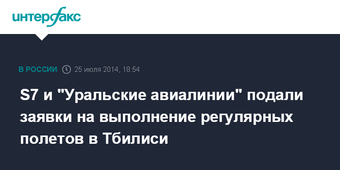Москва. 25 июля. INTERFAX.RU - Авиакомпания S7 и "Уральские авиалинии" запросили у авиавластей РФ разрешения выполнять регулярные полеты в Грузию, следует из информации на сайте Федерального агентства воздушного транспорта (Росавиация).