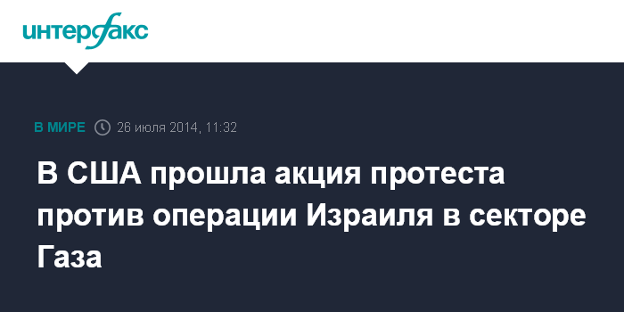 Москва. 26 июля. INTERFAX.RU - Сотни человек вышли на улицы Нью-Йорка с призывом прекратить операцию армии обороны Израиля против движения ХАМАС в секторе Газа, сообщает веб-сайт израильского издания The Jerusalem Post ("Джерузалем пост").